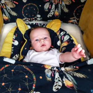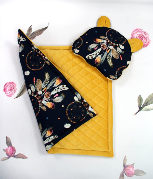 Kocyk będzie idealny już od pierwszego dnia życia dziecka. Może mieć on szeroki wachlarz zastosowań – od przewijaka poprzez becik do kołderki, którą okryjemy dziecko podczas spacerów. W komplecie z kocykiem mięciutka i płaska poduszka dla niemowląt w kształcie misia, motylka lub skrzydełek. Przed zakupem należy podać jaki kształt poduszki mamy dodać do kompletu.