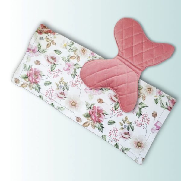 W komplecie z kocykiem mięciutka i płaska poduszka dla niemowląt w kształcie misia, motylka lub skrzydełek. Przed zakupem należy podać jaki kształt poduszki mamy dodać do kompletu.