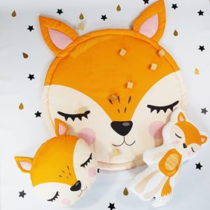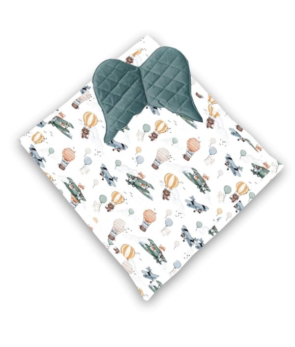 W komplecie z kocykiem mięciutka i płaska poduszka dla niemowląt w kształcie misia, motylka lub skrzydełek. Przed zakupem należy podać jaki kształt poduszki mamy dodać do kompletu.