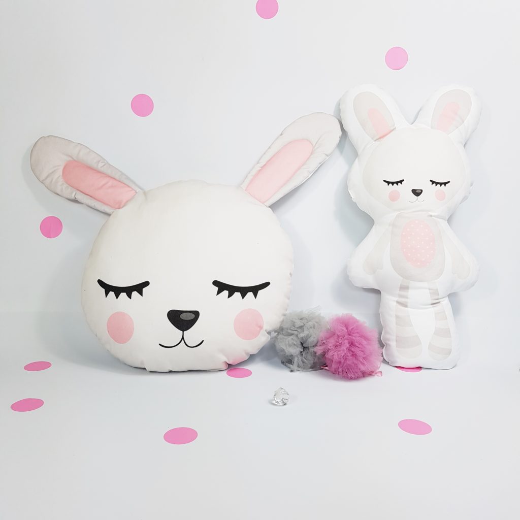 Poduszka została uszyta z najwyższą starannością z bardzo dobrych jakościowo materiałów. Maskotka królika to świetny dodatek dekoracyjny do pokoju, wykonana z materiałów najwyższej jakości, wypełniona antyalergiczną kulką.