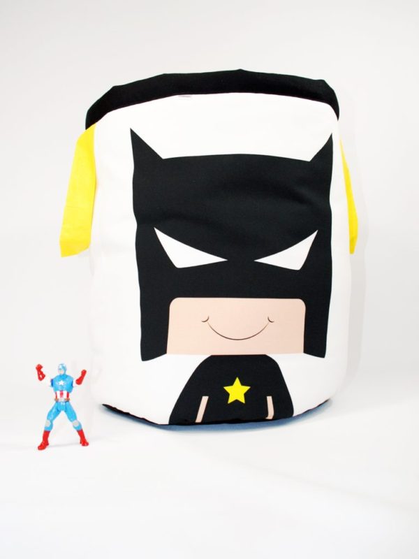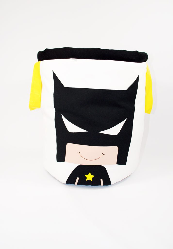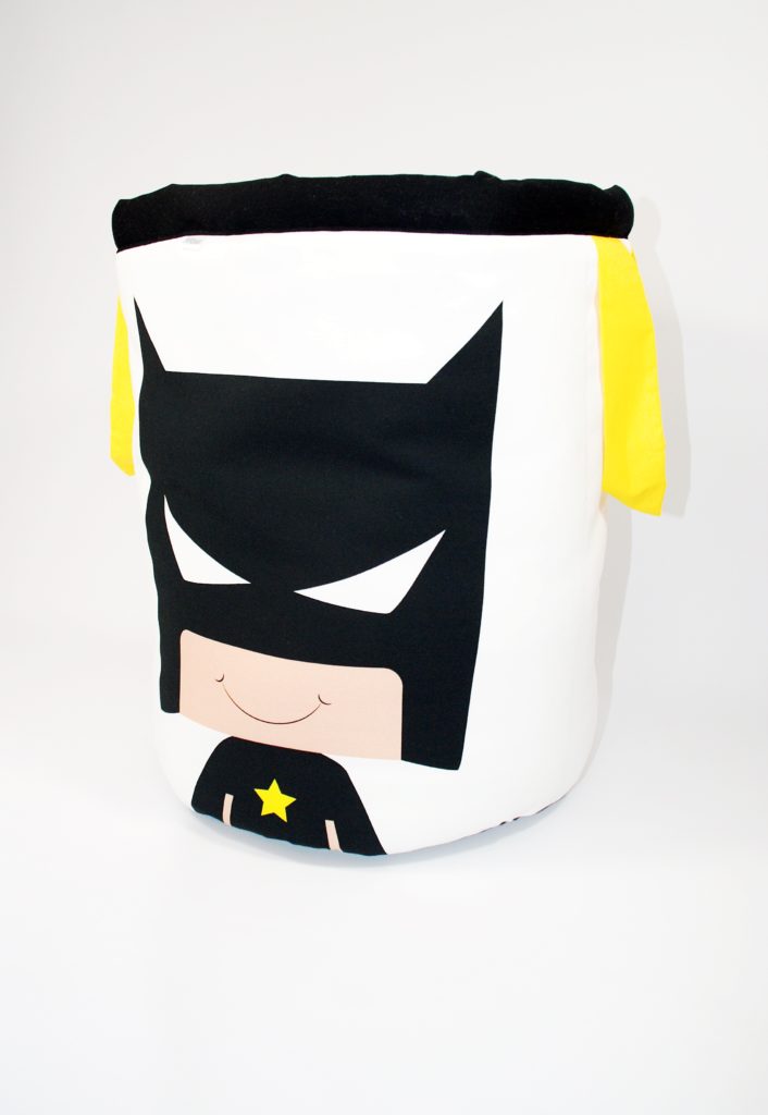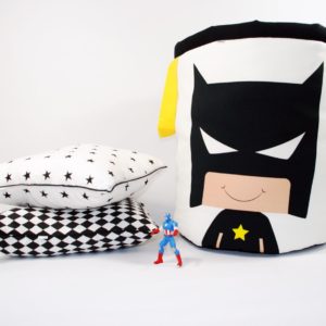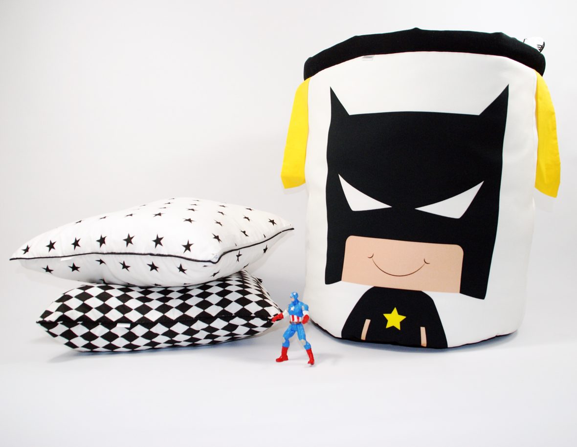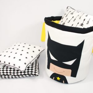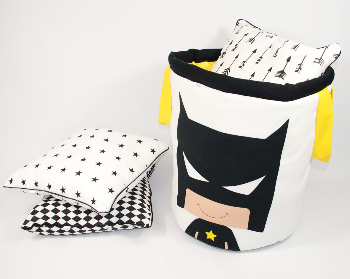 Nasz kosz został wykonany z grubej bawełny oraz antyalergicznego wypełnienia. Spód kosza został wykonany z czarnej bawełny, dzięki czemu nie brudzi się, jest prostszy w utrzymaniu czystości. Kosz “strażnik pokoju” to świetne uzupełnienie produktów z tej serii – tipi, maty, półek oraz pościeli.