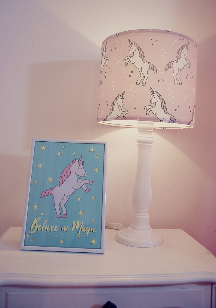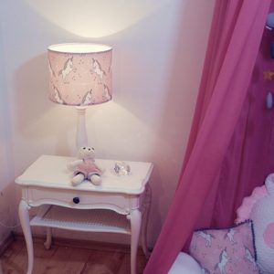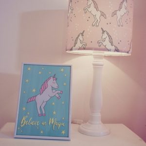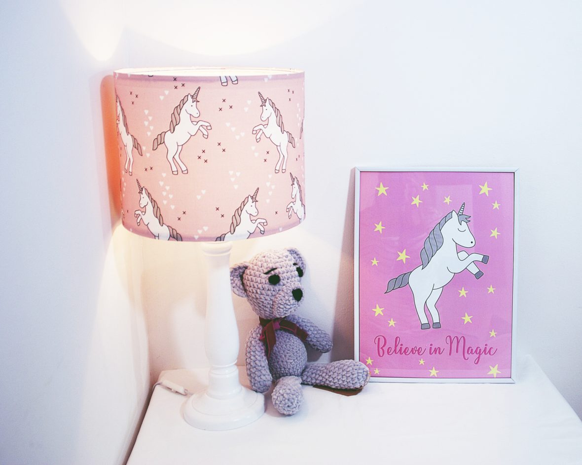Lampa dekoracyjna daje piękne i delikatne światło w pokoju Maluszka. Po włączeniu jednorożce cudownie tańczą wokoło, wszystko zaczyna wyglądać magicznie! Rzeźbiona podstawa w kolorze białym sprawia, że lampa sprawdzi się idealnie nie tylko w pokoju dziecięcym.