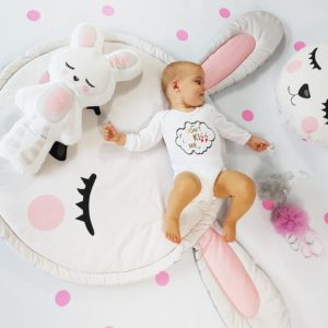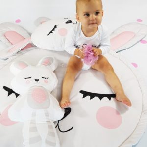 Wesoła buźka rozbawi każdego Maluszka a pastelowe ale i charakterystyczne kolory będą pasowały do każdego wnętrza. Od spodu mata jest obszyta materiałem wodoodpornym, dzięki czemu można ją zabrać na piknik, na plażę, do ogrodu czy na taras. Mata została uszyta z najwyższą starannością. Antyalergiczne wypełnienie sprawia, że jest ona miękka i z powodzeniem można uciąć sobie na niej popołudniową drzemkę.