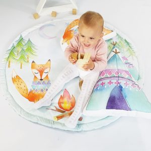 Wesoła buźka rozbawi każdego Maluszka a pastelowe ale i charakterystyczne kolory będą pasowały do każdego wnętrza. Mata została uszyta z najwyższą starannością. Antyalergiczne wypełnienie sprawia, że jest ona miękka i z powodzeniem można uciąć sobie na niej popołudniową drzemkę.