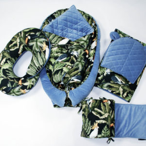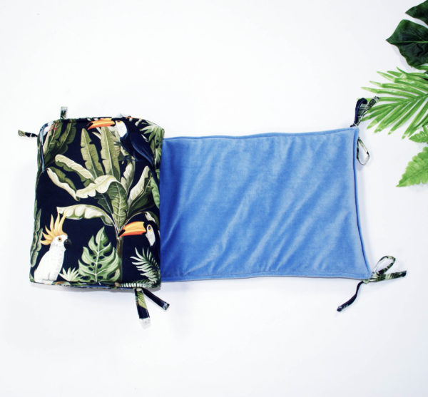 Nasz ochraniacz jest wykonany z tkaniny velvet, niezwykle miłej, miękkiej i przyjemniej  w dotyku oraz tkaniny bawełnianej we wzór. Ochraniacz do łóżeczka ma rozmiar 30x180cm (+/-3cm). Jest mocowany za pomocą, bawełnianych troków – ich odpowiednie rozmieszczenie sprawia, że ochraniacz pasuje idealnie do łóżeczka dziecięcego.