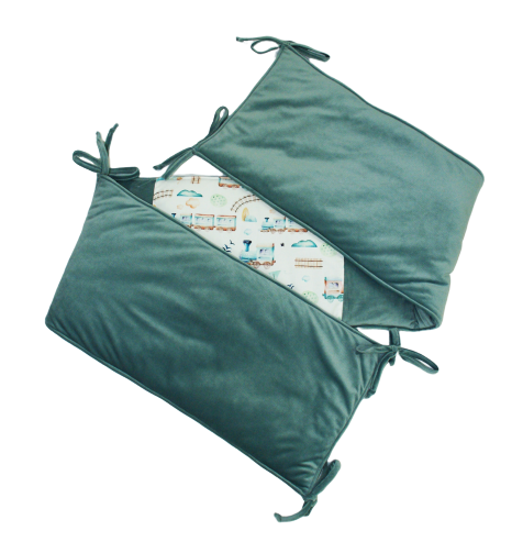 Nasz ochraniacz jest wykonany z tkaniny velvet, niezwykle miłej, miękkiej i przyjemniej w dotyku oraz tkaniny bawełnianej we wzór.