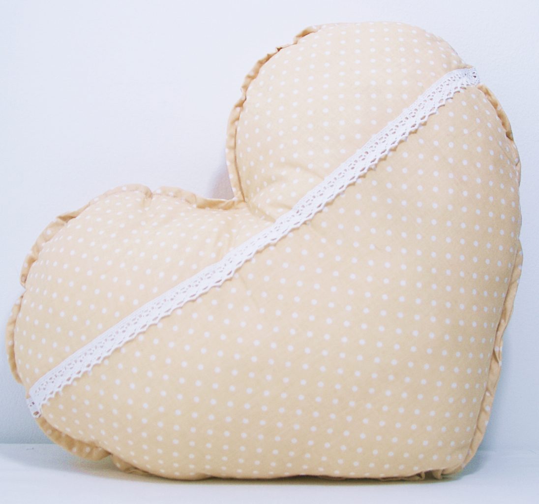 Duża poduszka w kształcie serca to propozycja nie tylko dla najmłodszych. Ozdobna koronka nadaje poduszce subtelności, która sprawia, że świetnie sprawdzi się w salonie czy sypialni.