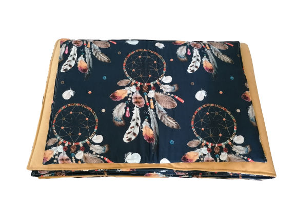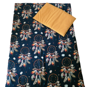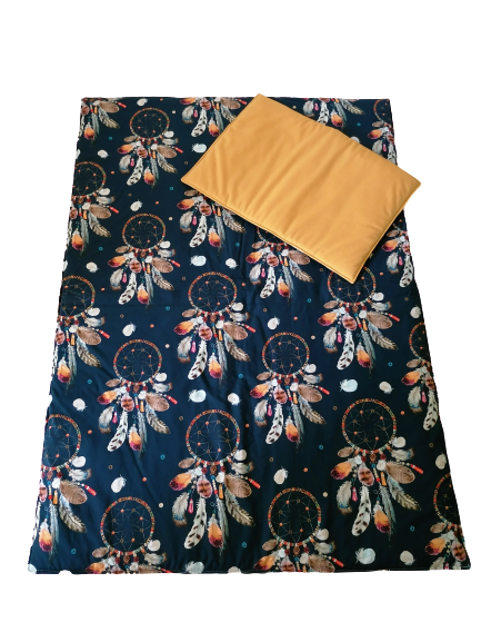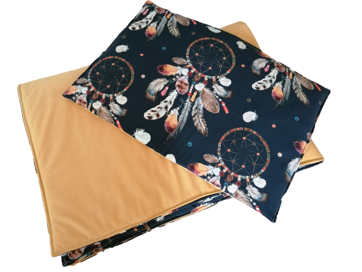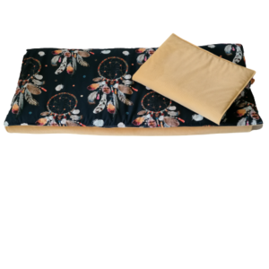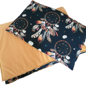 Nasza pościel uszyta jest z wysokogatunkowej bawełny o bardzo miękkim i delikatnym splocie. Wzór w łapacze połączony z velevetem w kolorze musztardowym doskonale udekoruje łóżko malucha ale i straszaka.
